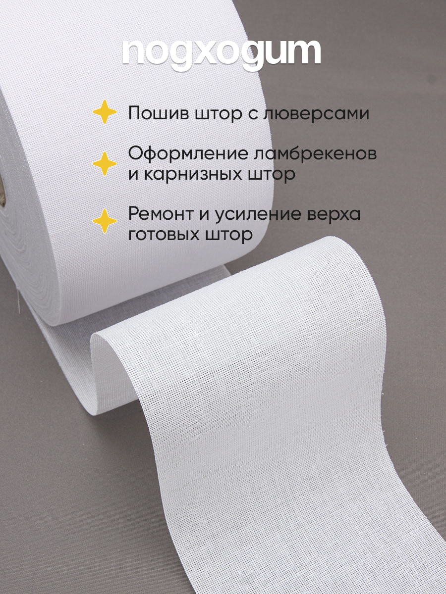 Идеальное решение для быстрого и аккуратного создания люверсных штор! Термоклеевая люверсная лента значительно упрощает процесс пошива, позволяя легко формировать ровные и прочные отверстия под люверсы без необходимости сложного монтажа.