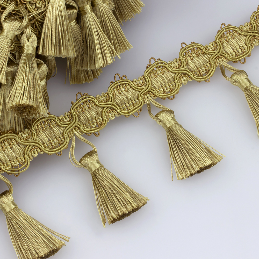 Бахрома с кисточками доступна в разных цветах и размерах, что позволяет выбрать подходящий вариант для любого стиля интерьера. Она может быть использована как основной акцент или дополнительный элемент, чтобы подчеркнуть определенные детали или создать интересный контраст.
