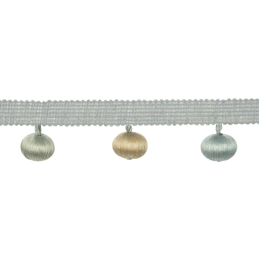Бахрома с шариками A8300-1 Mirtex Premium утиное яйцо/бежевый/пыльно-бирюзовый (L4 см/d2.3см/12,5 м)