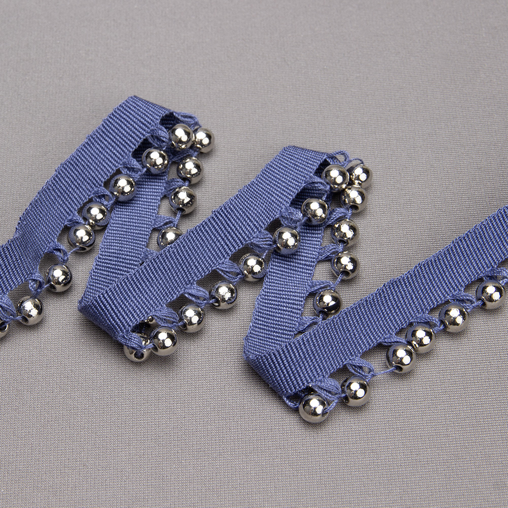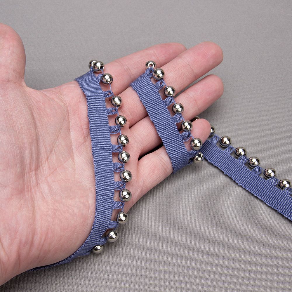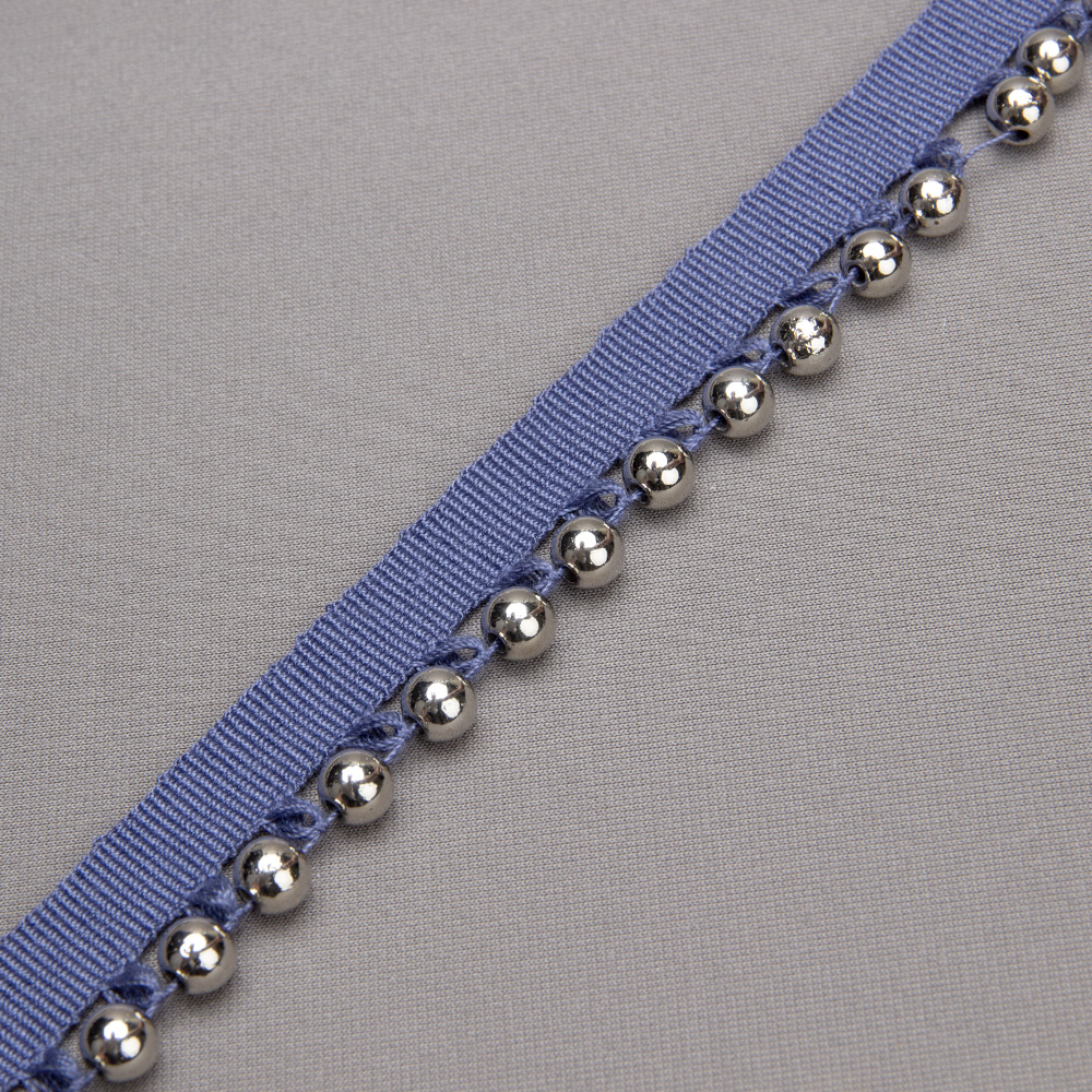Бахрома-кант с бусами A121C-2 синий деним/серебро (12,5 м)