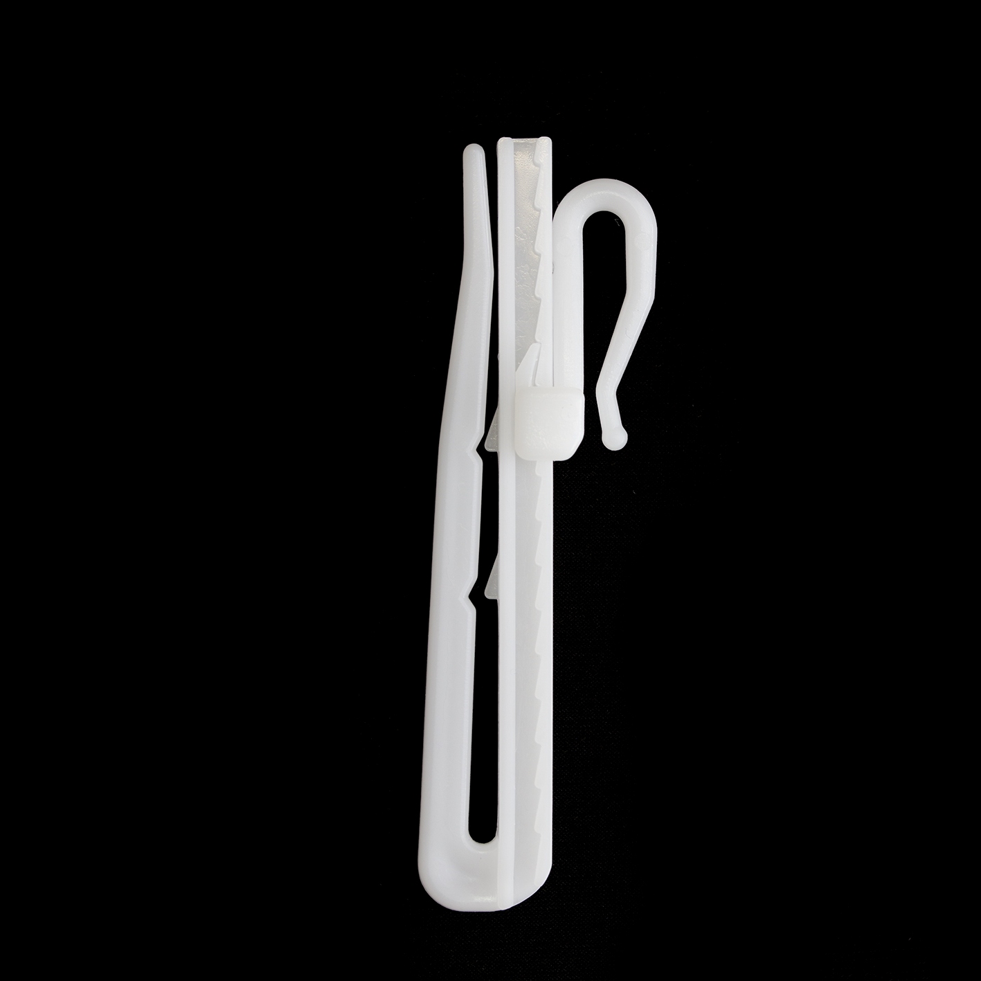 Крючок регулируемый высоту штор, пластиковый MirTex SJ-8,5 см белый (50 шт)