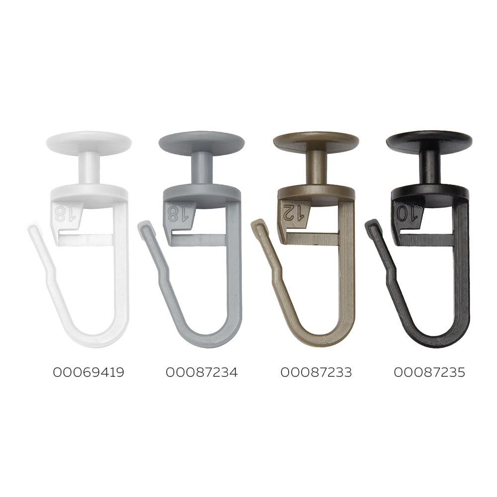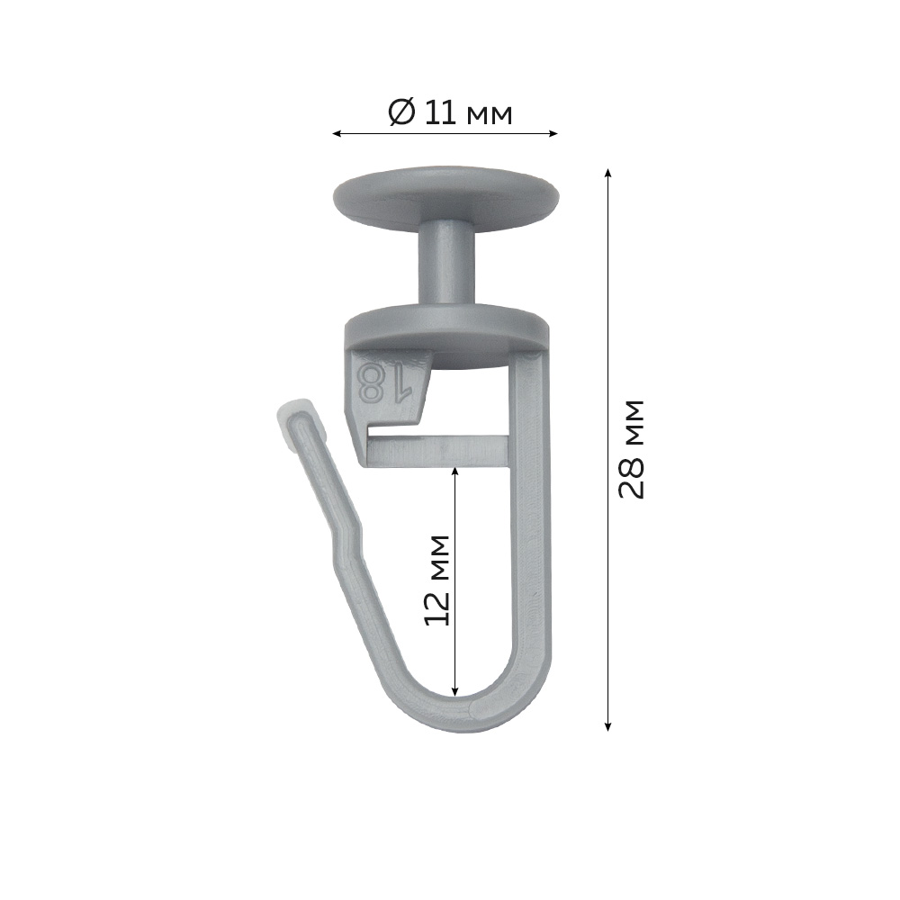 Пластиковые крючки‑гвоздики А2511 предназначены для подвеса тюля и штор на карнизные шины. Увеличенная шляпка Ø 11 мм обеспечивает надежную фиксацию в пазе и стабильное скольжение по направляющей, а гладкая поверхность бережно относится к ткани.