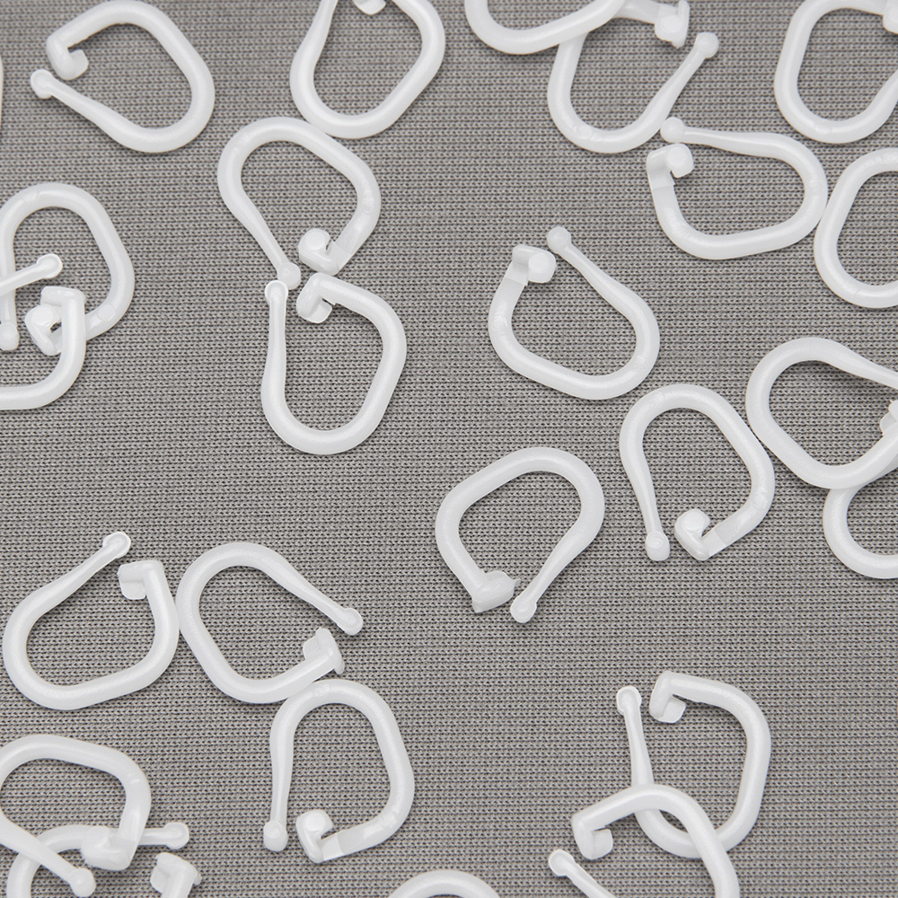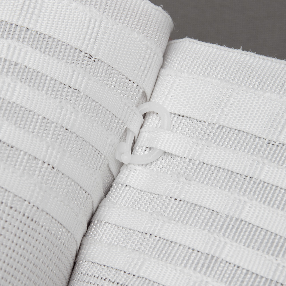 Особенность данного кольца – в механизме соединения с лентой или кордом римской шторы. Этот процесс становится быстрым и доступным, нет необходимости пришивать деталь к тесьме. Достаточно продеть раскрытый «усик» кольца в карман шторной ленты, пришитой с тыльной стороны полотна, и защёлкнуть его в замковой части.