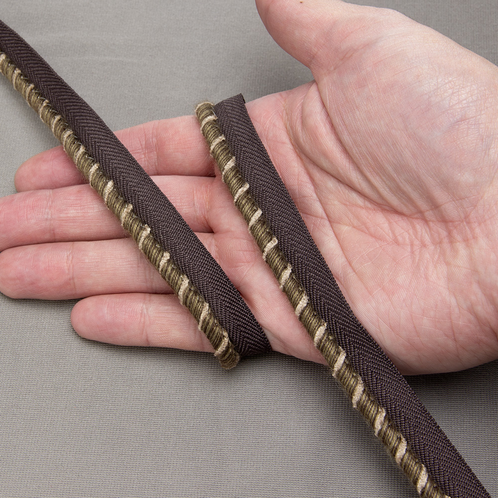 Декоративный пришивной кант с аккуратным валиком и удобной тесьмой-лапкой для втачивания в шов. Натуральная гамма с мягкими контрастными «стежками» придаёт изделиям объем и аккуратный контур, гармонично сочетается с портьерными, обивочными и декоративными тканями.