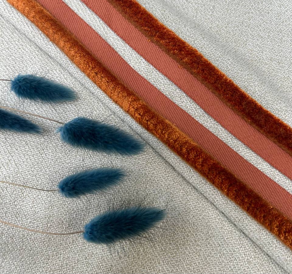 Бархатный кант — элегантная отделочная тесьма со вшитым шнуром для аккуратного и выразительного оформления краев штор, покрывал и декоративных подушек. Мягкий ворс придает изделию благородный блеск и объем, а прочная тесьма-основание облегчает втачивание в шов.