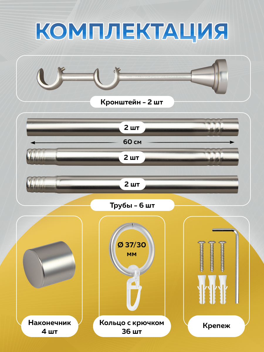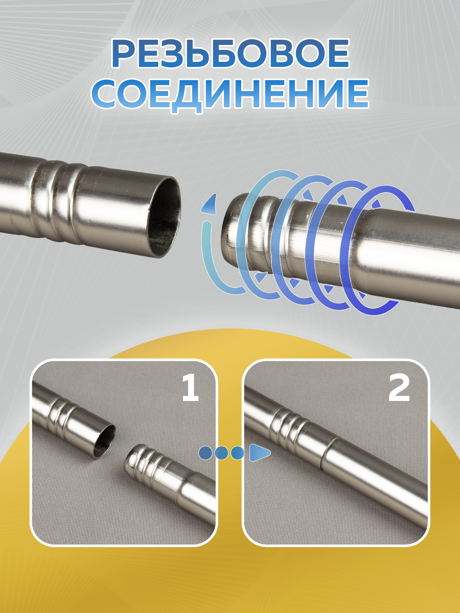 Составной, металлический, круглый карниз с резьбовым соединением.