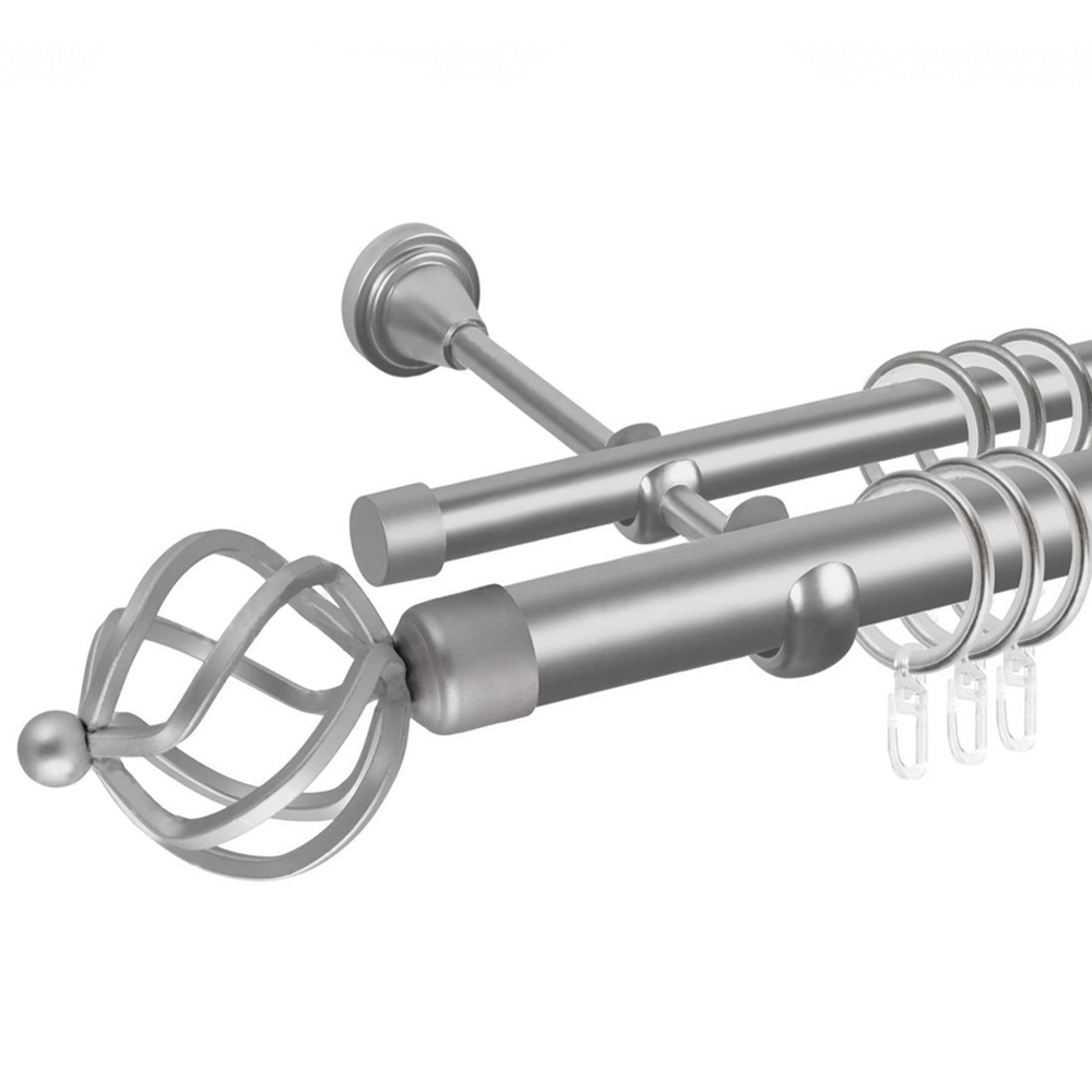 Карниз гладкий 2-рядный составной 25/16 мм цвет Сатин 2,4 м "АККО" (2 наконечника, 2 заглушки)
