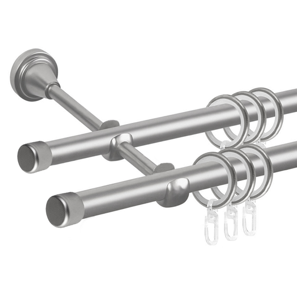Карниз металлический для штор гладкий двойной составной диаметром труб 16/16 мм. Штанги объединены соединителем. Если Вы являетесь ценителем классического стиля в контексте современного дизайна, то этот вариант карниза изготовлен специально для Вас. Четкость и изящность линий подчеркнут и дополнят интерьер Вашего окна, так как бы это сделал опытный дизайнер.