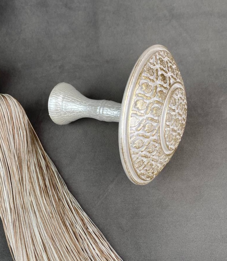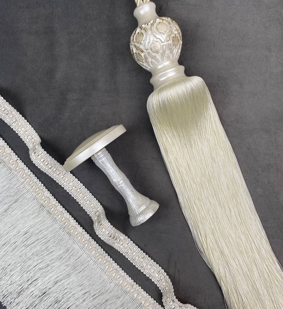Используется для подхвата и оформления штор, для украшения балдахинов.У нас в наличии Кисть-подхват для штор M8-8 молочный поталь Mirtex Premium (L104/44см) "Royyana-Amphora", артикул 00085066 в отличном качестве.Характеристики