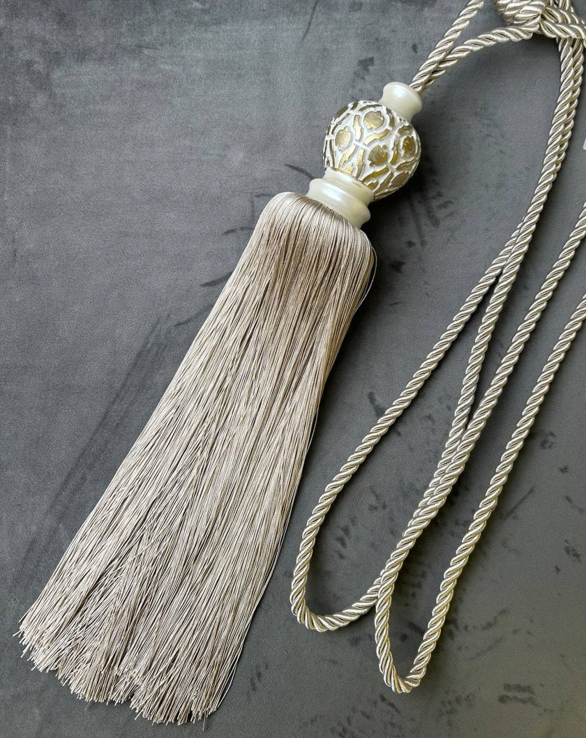 Кисть-подхват для штор M8-молочный поталь/c26 светло-бежевый Mirtex Premium "Royyana-Amphora"