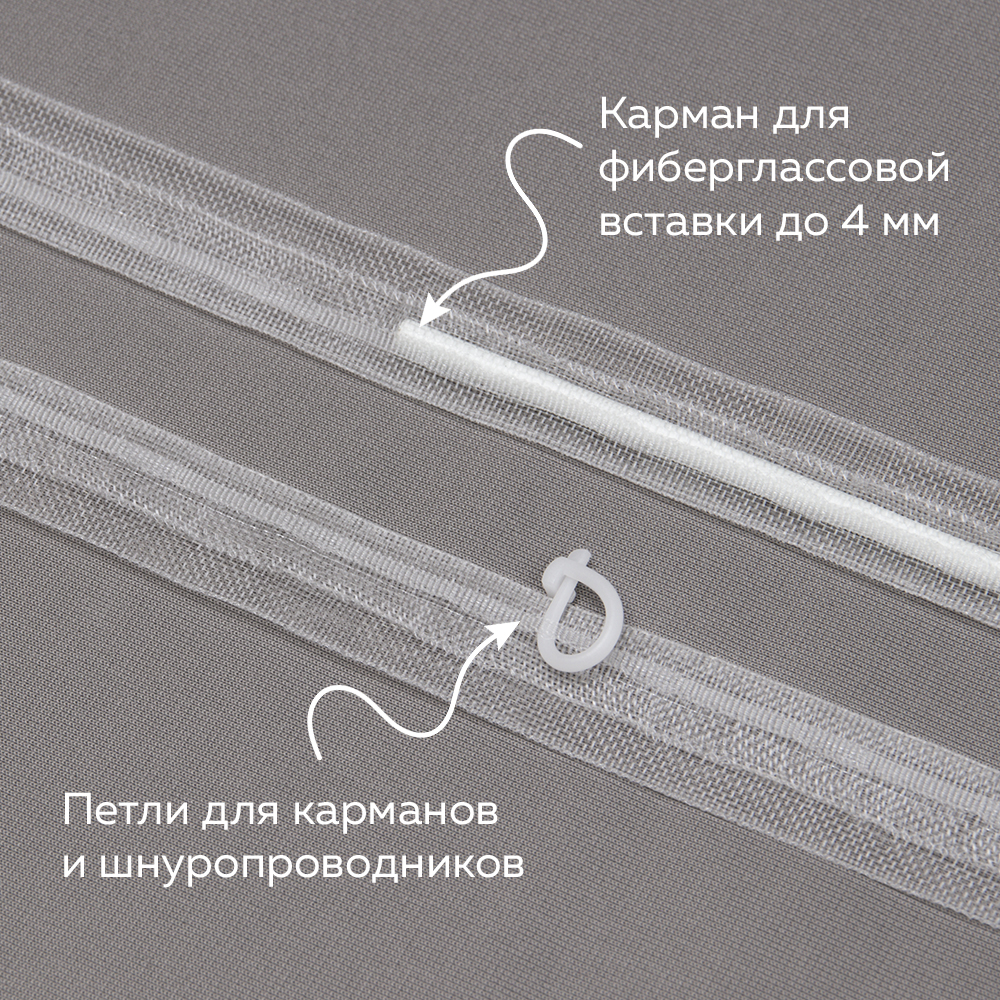 - Карман (кулиска) продольный для фиберглассовой вставки: 1 см (по ширине ленты).