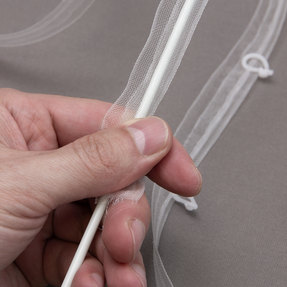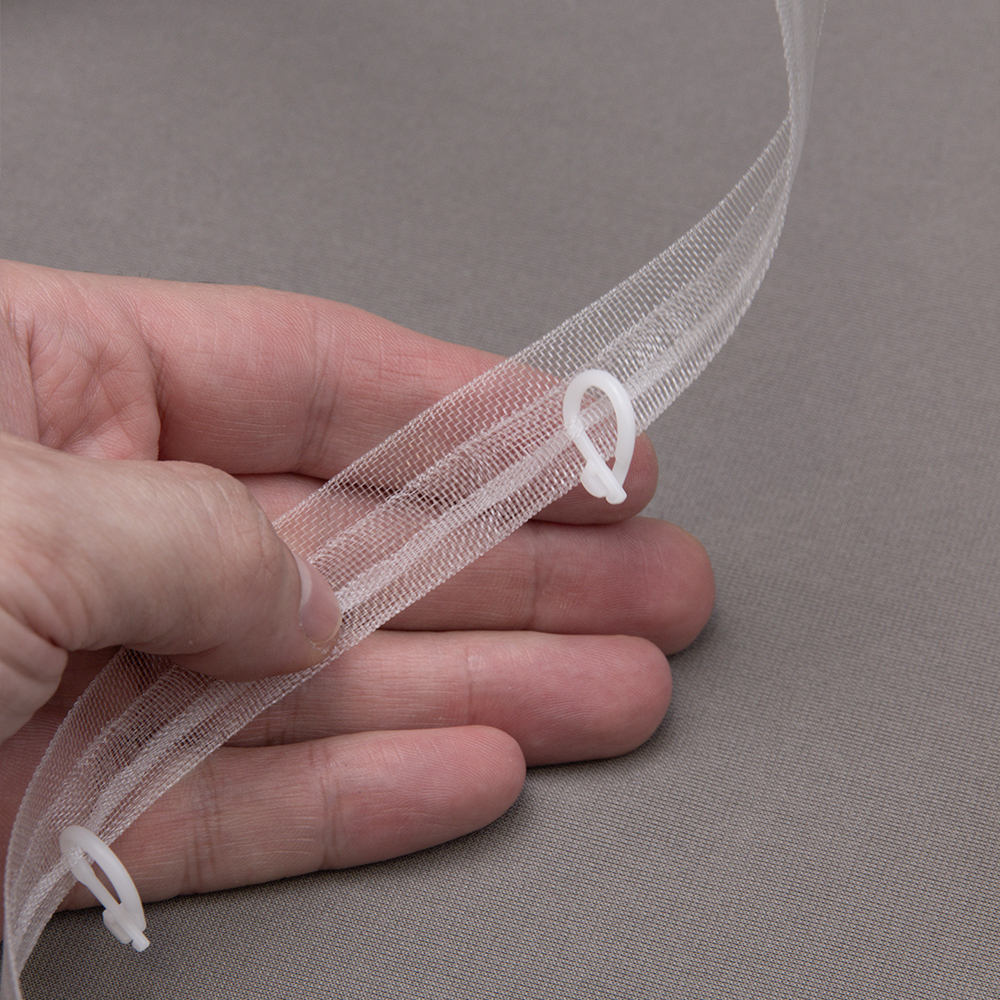 - Рекомендации при навеске: Подходит для шнуропроводников разных размеров, петля для них длиной 1.5 см, располагаются с шагом 0.5 см по всей длине. Отверстия 2 см снизу кулиски, служат для вдевания фиберглассовой вставки в готовое изделие, когда лента зафиксирована по краям строчкой.