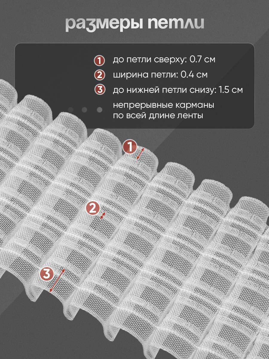 Бренд MirTenda Ширина, (см) 9 Коэффициент Сборки 1:2 Вид Сборки карандашная/столбики Тип Крепления на крючки Количество Карманов 7 Количество Шнурков 4 Упаковка 50 м Материал 100% полиэстер Основная единица измерения уп.50м -