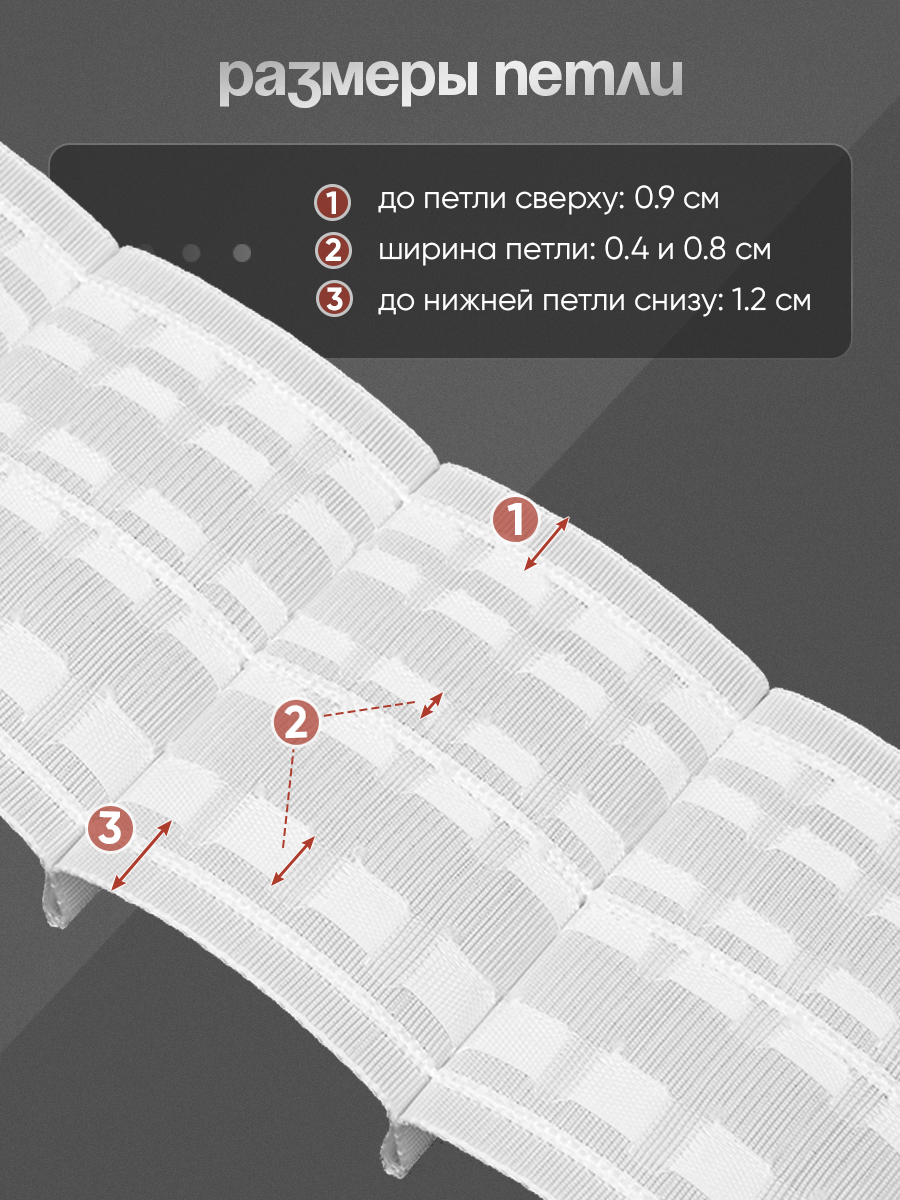 Рекомендации при навеске: учитывать размер крючка и глайдера, тяжелые шторы рекомендуем вешать сразу за две петли по высоте штор.