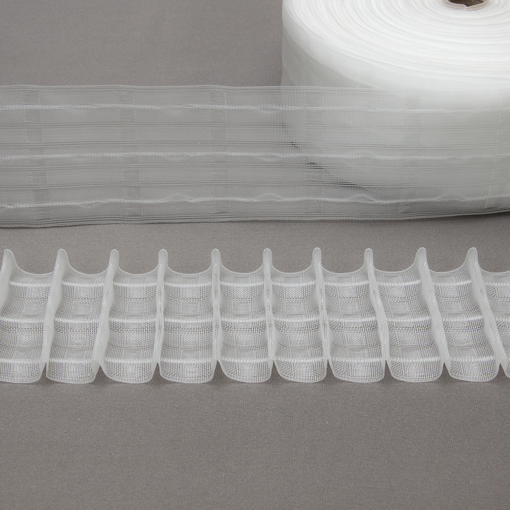 Особенности: средней ширины 7.6 см, жесткая основа, фиксированные складки, популярный коэффициент, многокарманная - возможность регулировать высоту у готового изделия. Близкое расположение петель по высоте, что позволяет захватить крючком сразу 2 петли, для лучшей фиксации крючка и статичности шторы. За счет ниточной структуры петель, можно регулировать высоту штор на 1.5 шт петли. Средний выступ складки 1.2 см, сформирует красивую драпировку у шторы из тонких тканей. Есть тканый компаньон.