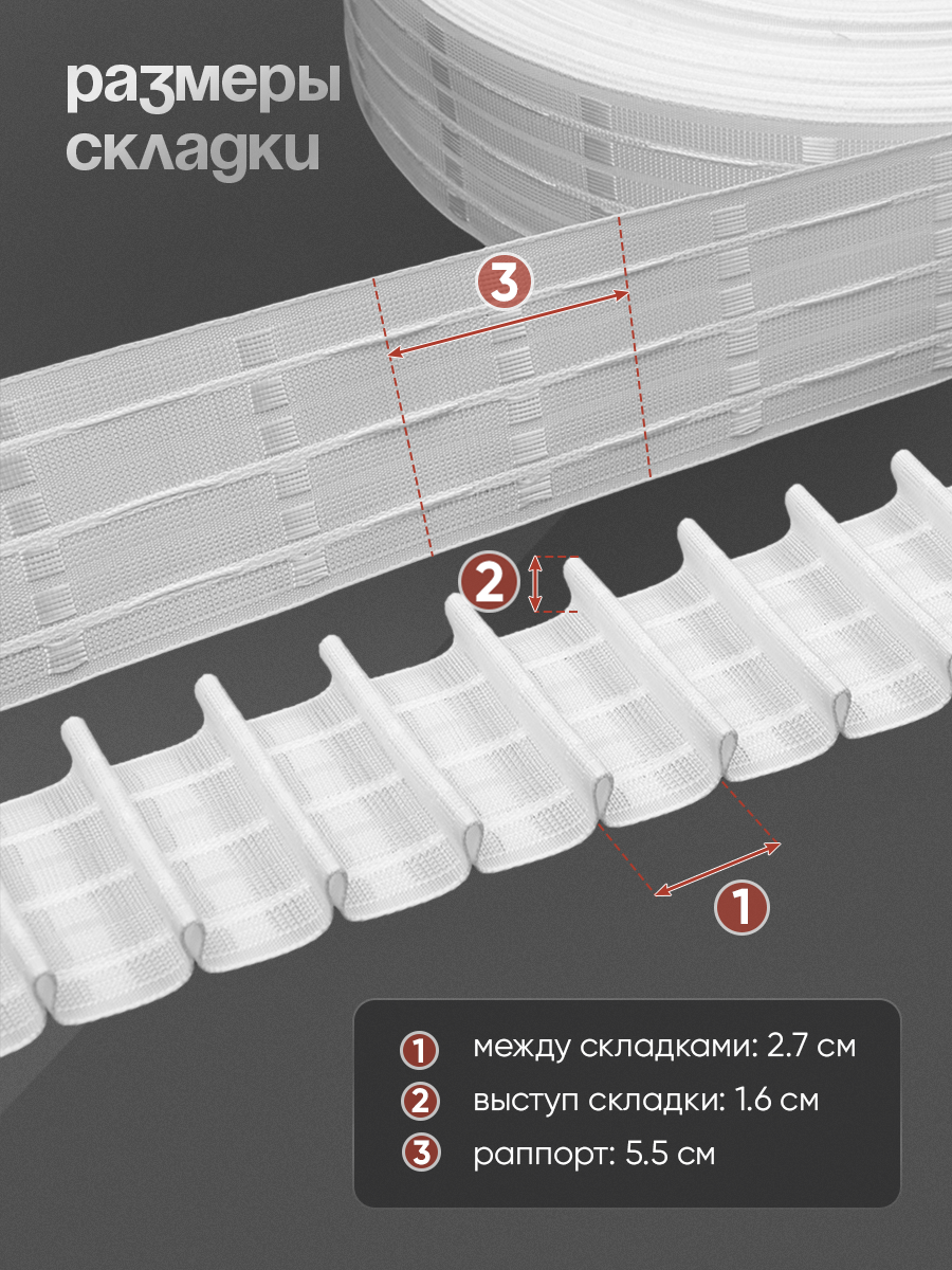 - Между складками: 2.7 см