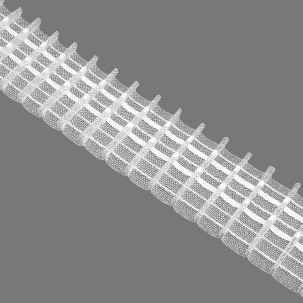 Особенности: средняя ширина 6.3 см, фиксированные складки, низкая цена, пользуется большим спросом для пошива штор на маркетплейсы и эконом-объекты. Жесткая, хорошо держит форму складок.