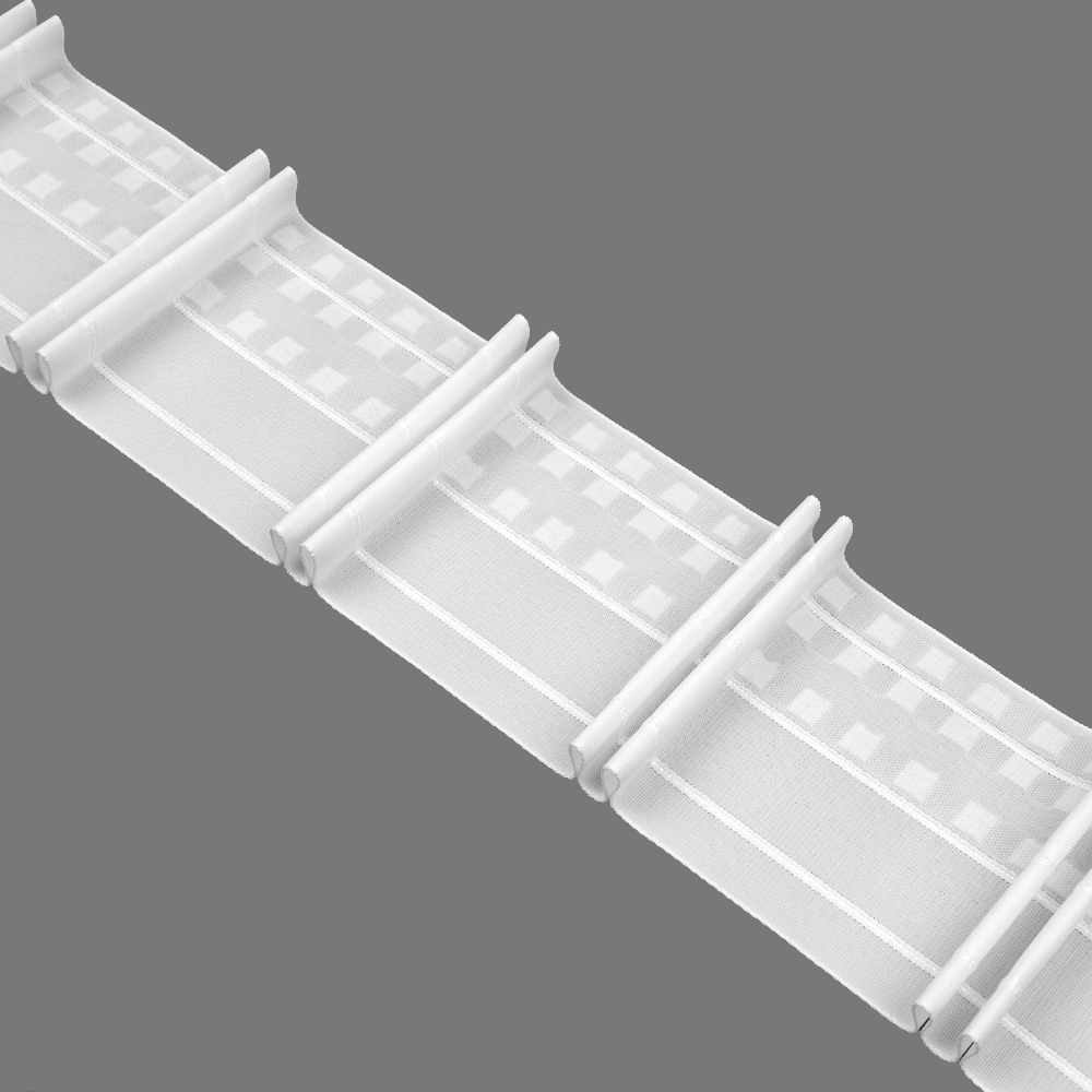 Особенности: широкая 10 см, экономный коэффициент 1:1.8, фиксированные складки, расположенные на расстоянии друг от друга, помогут красиво драпироваться шторам при их раскрытии. Три ряда карманов, что позволяет не дошивать гребешок у шторы и регулировать высоту готового изделия. Подойдет для тонких и средней толщины тканей. Большой выступ складки - учитывать ширину ниши и расстояние между направляющими. Учитывать отступ ленты назад при раскрывании шторы. Принадлежит к серии лент с разным коэффициентом: 1:1.8, 1:2, 1:2.5 (прозрачные и тканевые). Есть прозрачный компаньон 4361МP (1:1.8). Из этой ленты можно создать двойные лучевые складки с эффектом ручной закладки, для этого после стягивания шторной ленты кордами, нужно два ровных луча зафиксировать строчкой сверху или снузу ленты вместе с тканью.