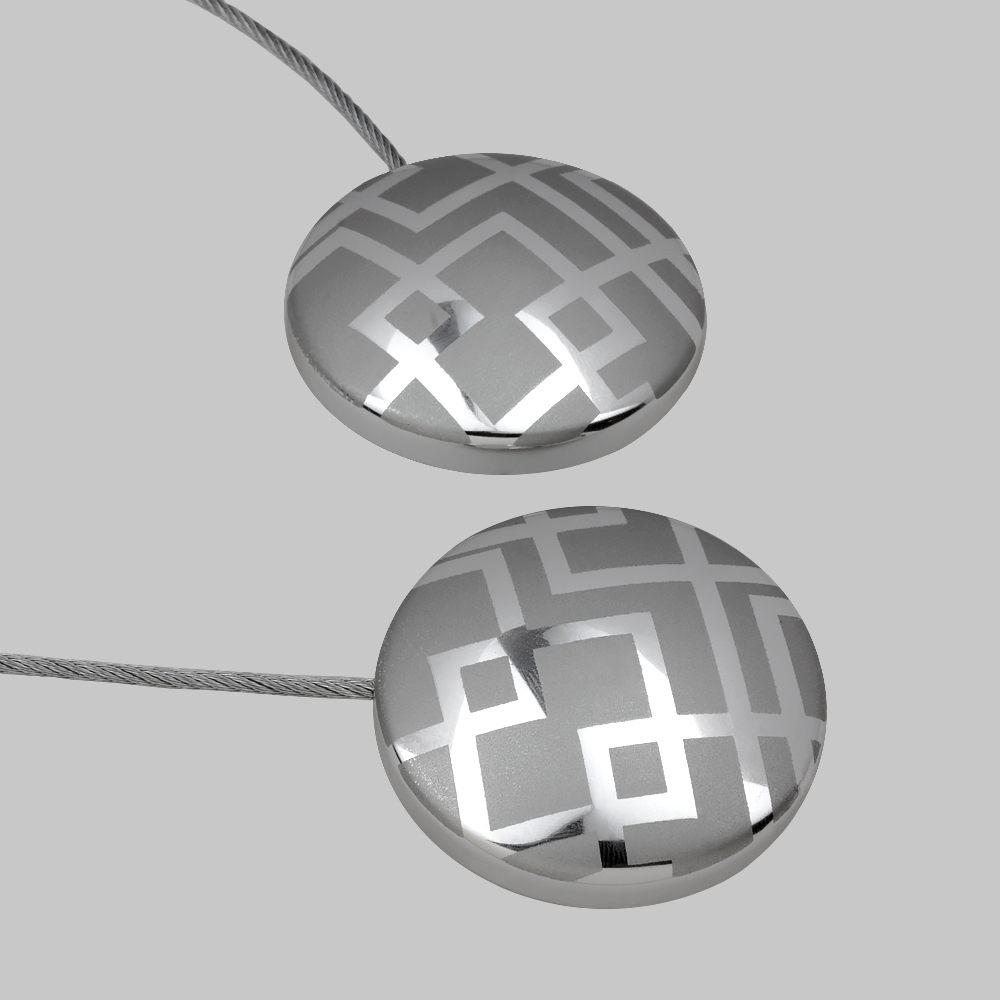 Магнит для штор Круг 45 мм на тросе №1П матовый хром/хром глянец "Ромбы"