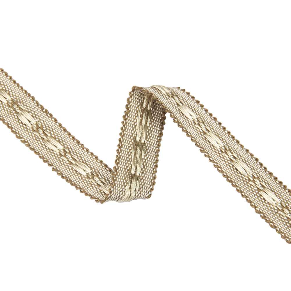 Тесьма отделочная используется для отделки покрывал, штор, мебели, абажуров.У нас в наличии Сутаж отделочный GP09-14949 Mirtex бежевый (2 см/12,5 м), артикул 00083104 в отличном качестве.