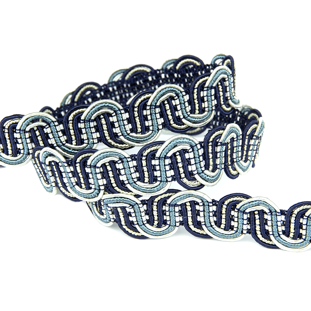У нас в наличии Сутаж отделочный LLS18-6 Mirtex темно-синий/бирюзовый/св.бежевый/молочный (2,4 см/12 м), артикул 00070879 в отличном качестве.Характеристики