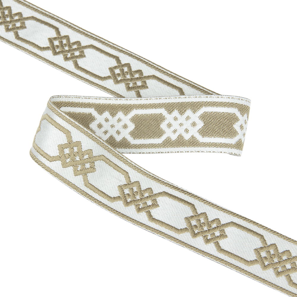 Бордюр для штор W3010-3 Mirtex темно-бежевый/светло-бежевый "Геометрический орнамент" 3 см/25 м