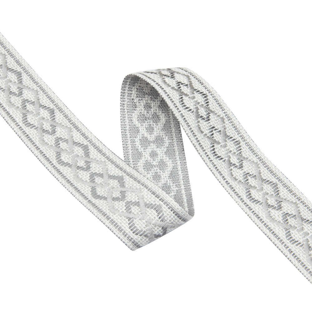 Особенностью жаккардовых лент, является их плотность. Их узор устойчив на протяжении многих лет.Такие ленты широко используются в швейном деле, для декорирования штор, портьер, постельного белья.