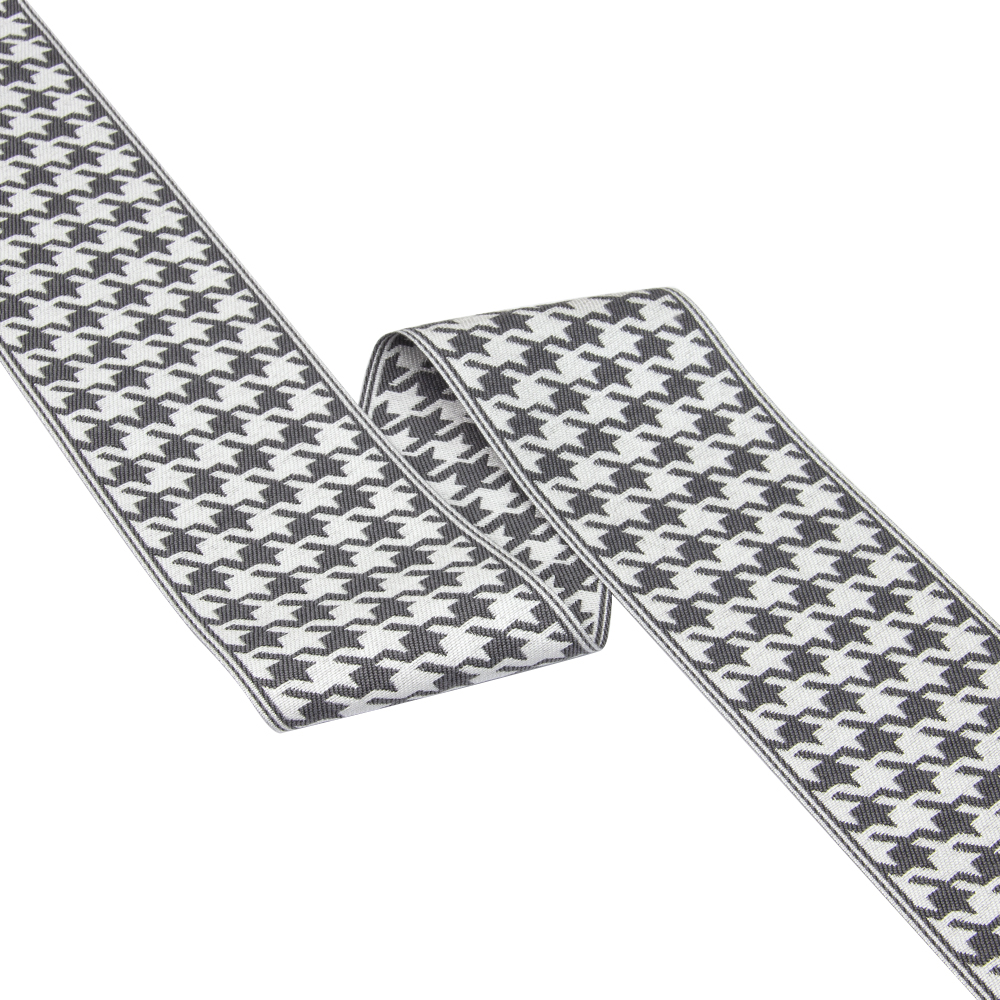Текстильный бордюр QNG8001-1 Mirtex темно-серый/белый "Гусиные лапки" Коллекция №3, шир.7,2см/±25 м
