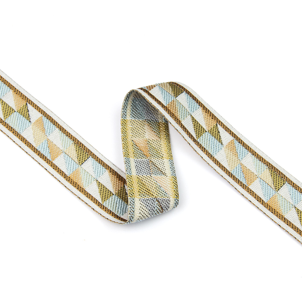Особенностью жаккардовых лент, является их плотность. Их узор устойчив на протяжении многих лет.Такие ленты широко используются в швейном деле, для декорирования штор, портьер, постельного белья.