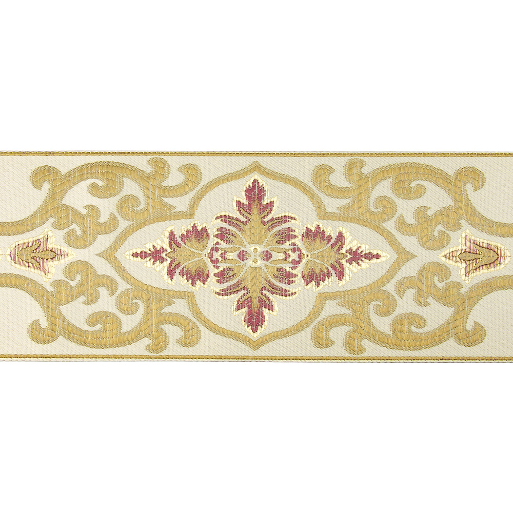 Текстильный бордюр YGH035-1 Mirtex античное золото/светло бордовый "Arabesque", ширина 9 см/±25 м