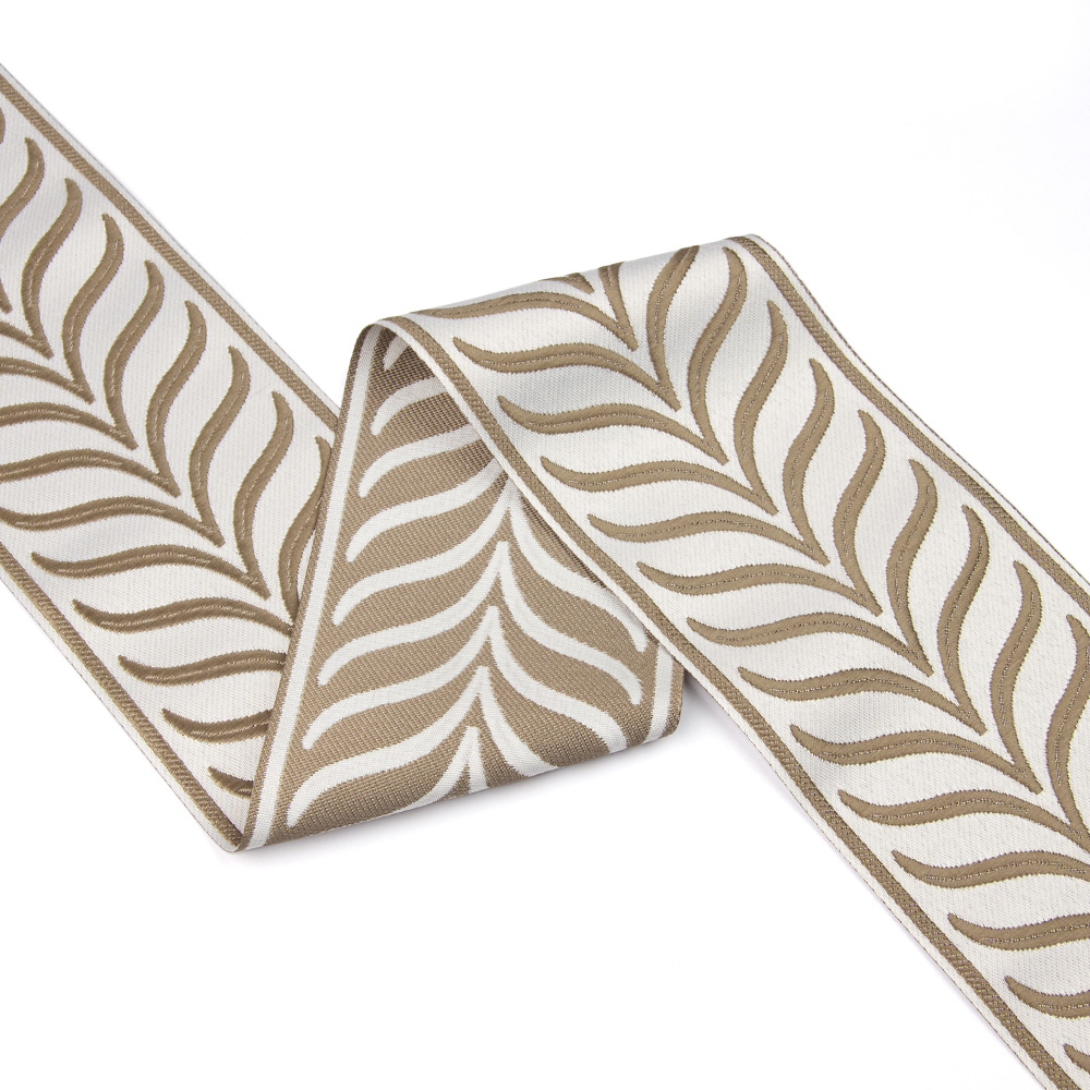 Особенностью жаккардовых лент, является их плотность. Их узор устойчив на протяжении многих лет.Такие ленты широко используются в швейном деле, для декорирования штор, портьер, постельного белья.