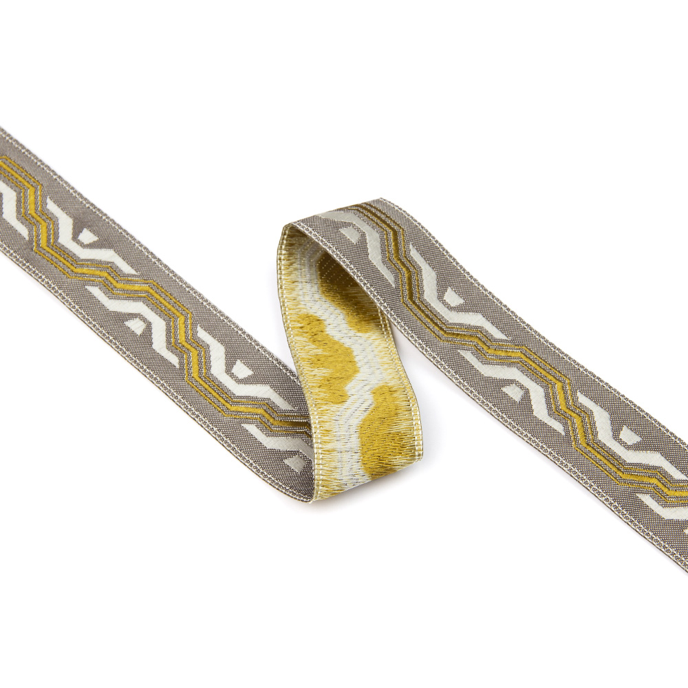 Особенностью жаккардовых лент, является их плотность. Их узор устойчив на протяжении многих лет.Такие ленты широко используются в швейном деле, для декорирования штор, портьер, постельного белья.