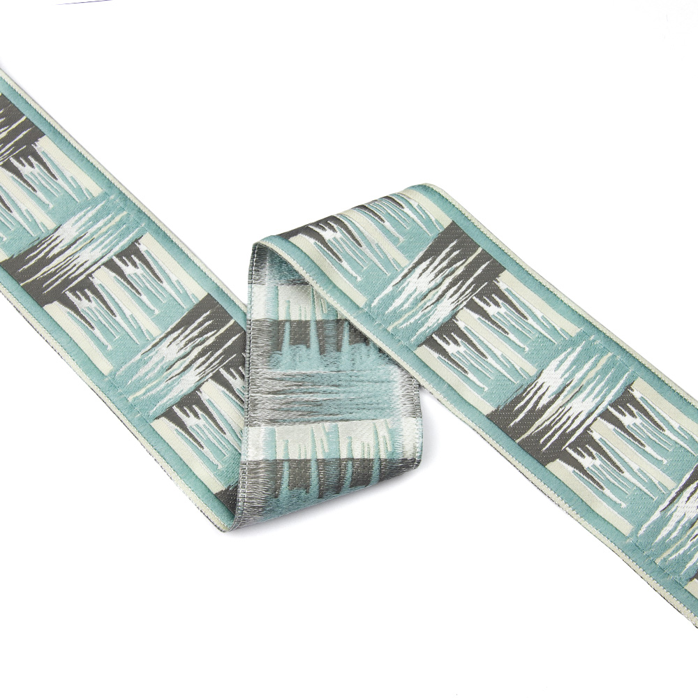 Особенностью жаккардовых лент, является их плотность. Их узор устойчив на протяжении многих лет.Такие ленты широко используются в швейном деле, для декорирования штор, портьер, постельного белья.