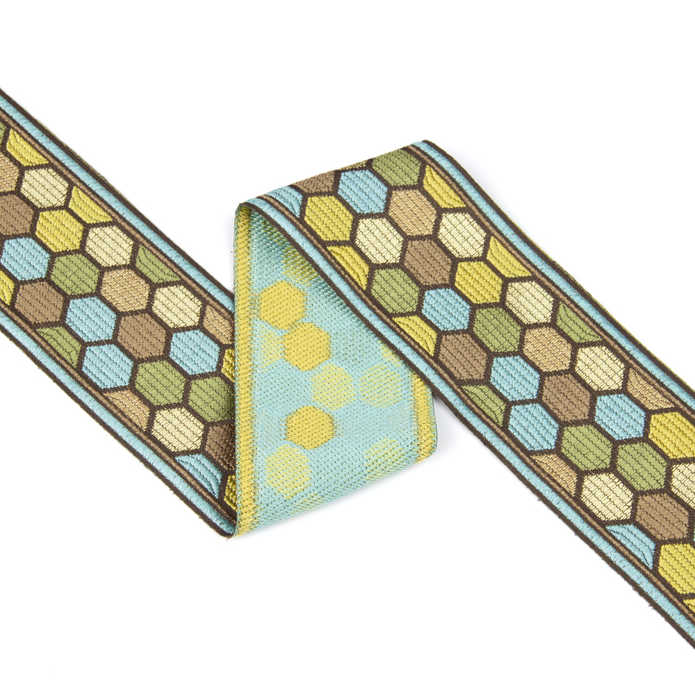 Особенностью жаккардовых лент, является их плотность. Их узор устойчив на протяжении многих лет.Такие ленты широко используются в швейном деле, для декорирования штор, портьер, постельного белья.