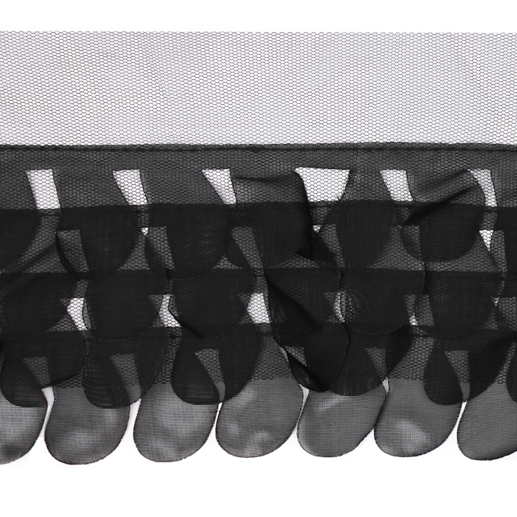 Тесьма объемная шифон 51-2010HT черный Шир:13,5см/уп.13,716м