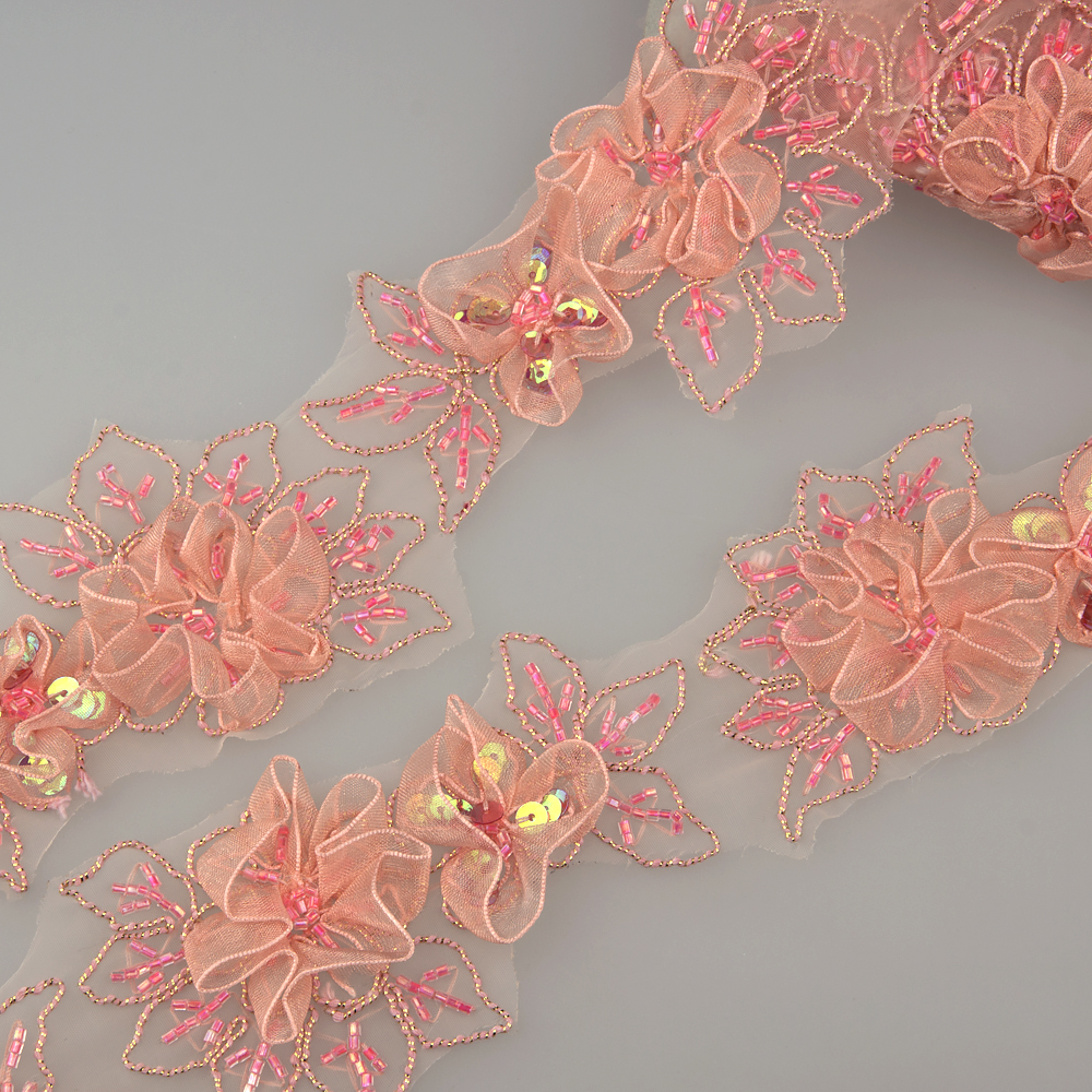 Тесьма Premium со стеклярусом P139 розовый (10 ярд.)