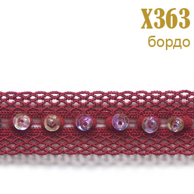 Тесьма с бисером и пайетками 363X бордо (22,86 м)