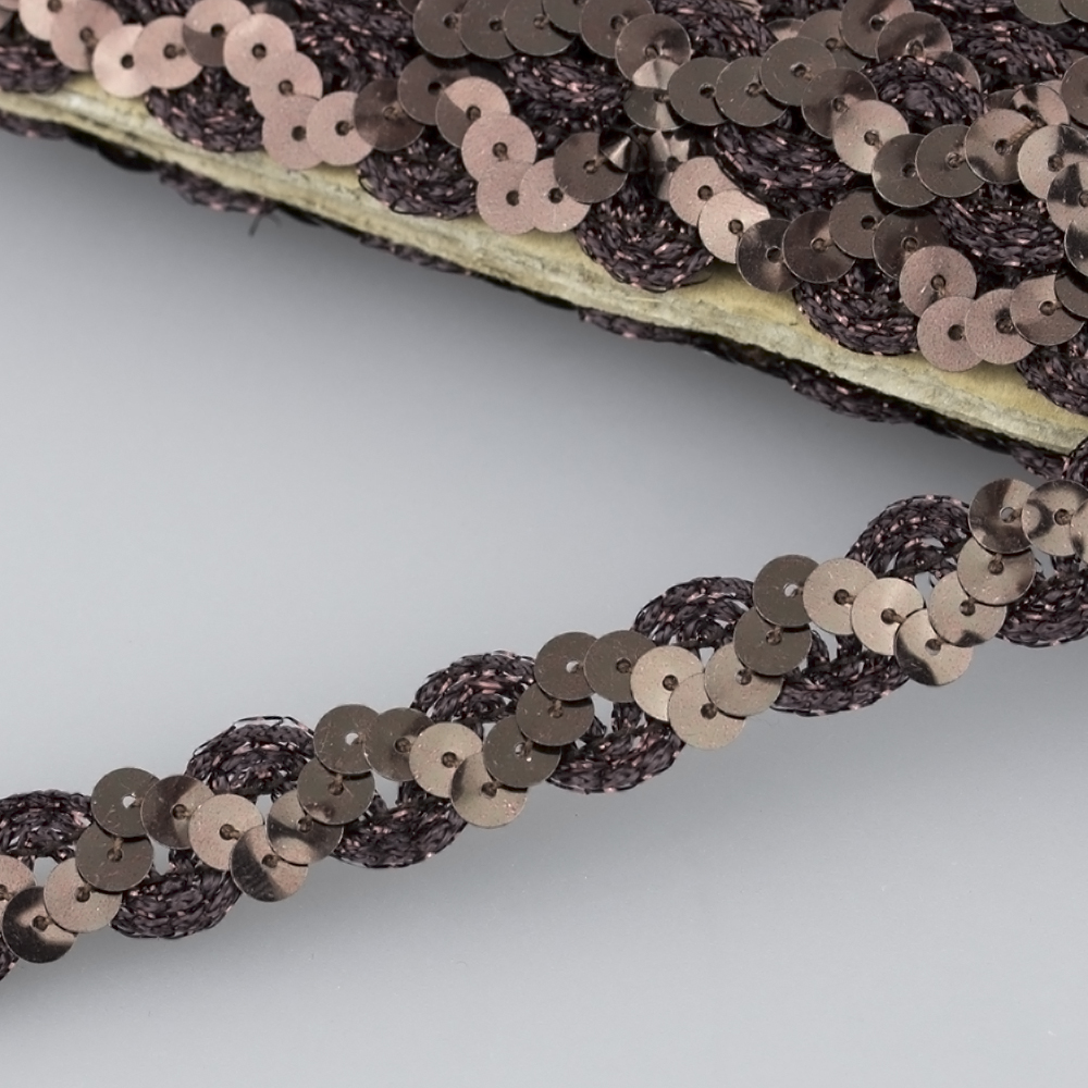 Тесьма с пайетками 6803-2 темно-коричневый (50 ярд.)