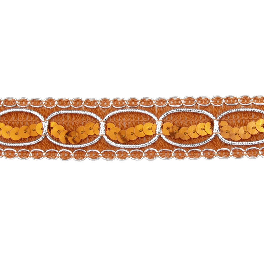 Тесьма с пайетками 6828-3 серебро/оранжевый (45,72 м)