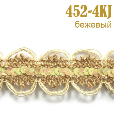 Тесьма KJ 452-4 выпускается в виде вязаной полосы с пайетками.