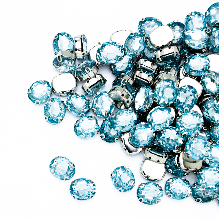 Стразы пришивные в оправе Овал 10*12 мм 036# светло-голубые (100 шт)