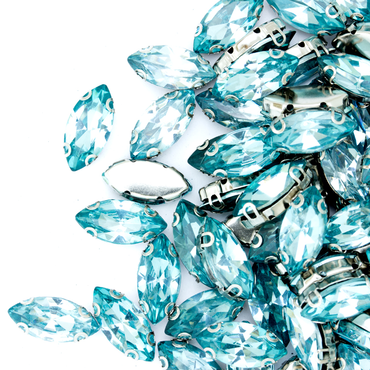 Стразы пришивные в оправе Ромб 7*15 мм 036# светло-голубые (100 шт)