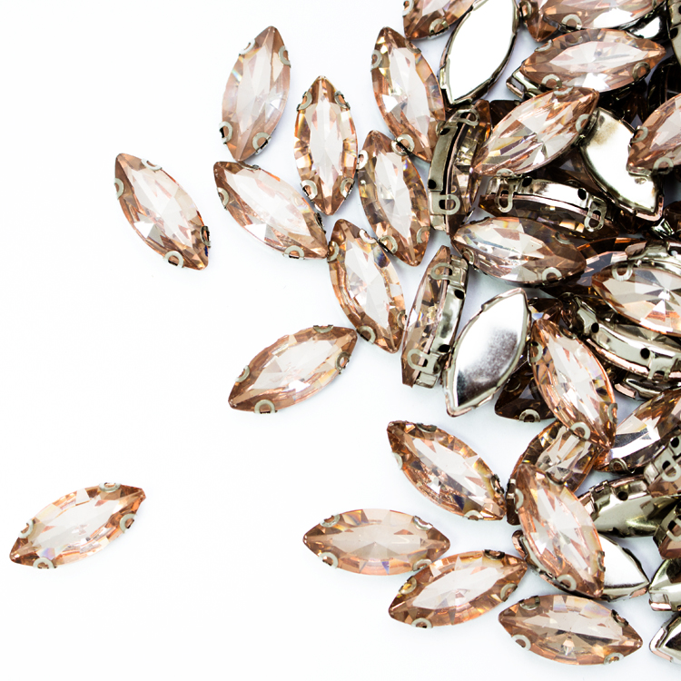 Стразы пришивные в оправе Ромб 9*20 мм 208# светло-персиковые (100 шт)