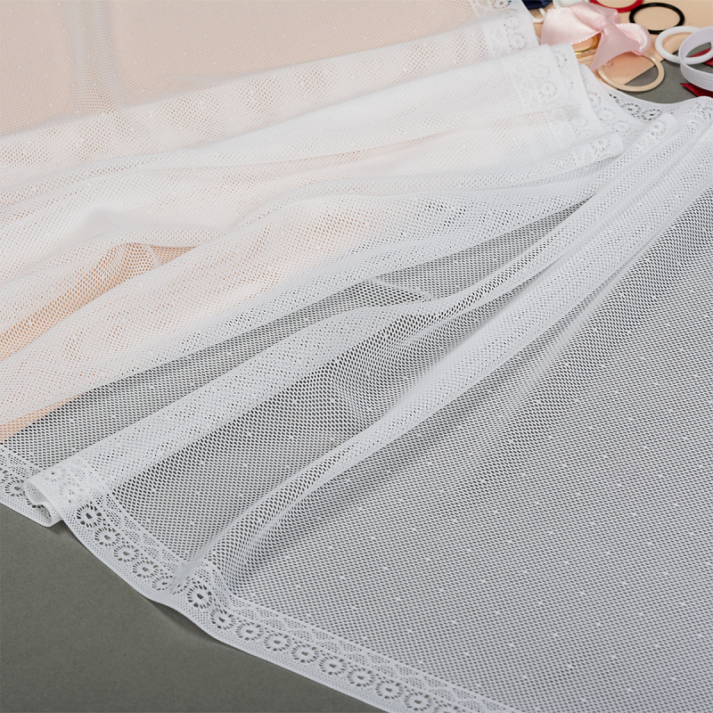 Очень нежное эластичное кружево. Легкое, воздушное и ажурное. Приятное на ощупь, хорошо тянется. Идеально подходит для нижнего белья, одежды, домашнего текстиля и других изделий.