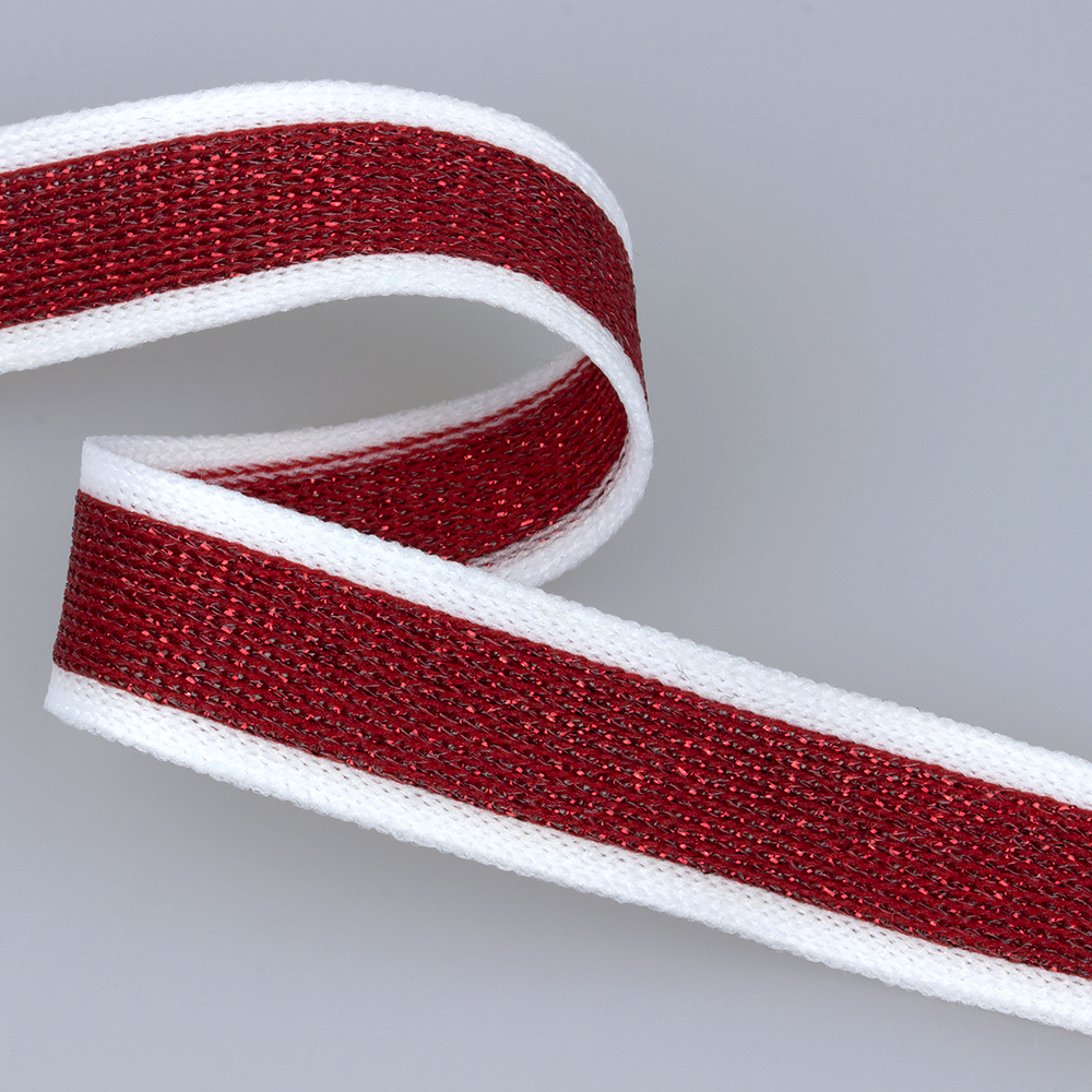 Неэластичная трикотажная тесьма предназначена для декорирования одежды, головных уборов, дизайнерских работ. По структуре напоминает репсовую ленту, но значительно мягче. Имеет декоративные металлизированные вставки по всей длине.