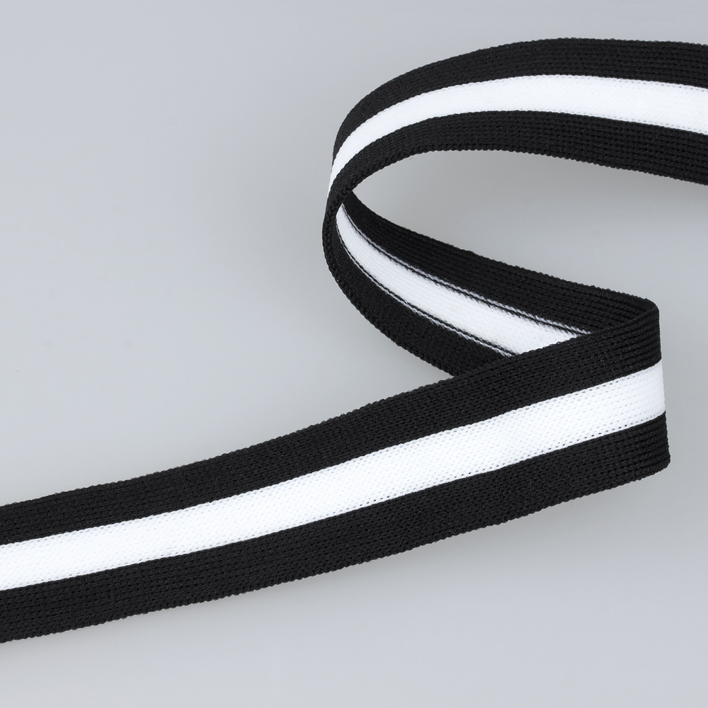 Тесьма лампасная трикотажная 138-8 черный/белый 2,5 см (65 м)