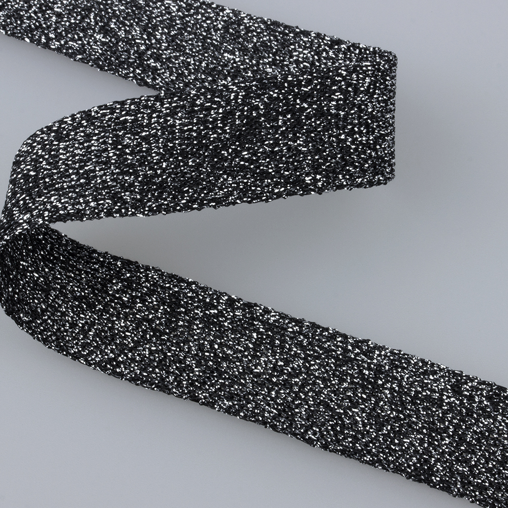 Неэластичная трикотажная тесьма предназначена для декорирования одежды, головных уборов, дизайнерских работ. По структуре напоминает репсовую ленту, но значительно мягче. Имеет декоративные металлизированные вставки по всей длине.