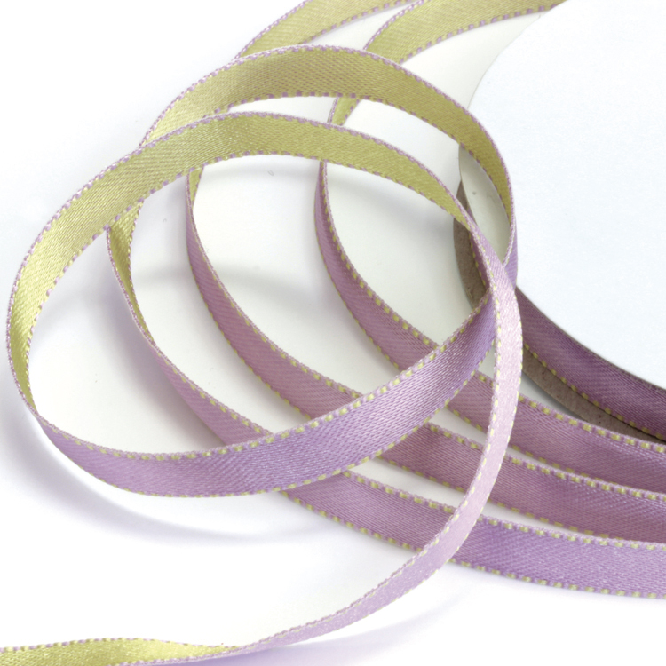Лента атласная двухсторонняя двухцветная 1134HG сиреневый/салатовый 10 мм (25 ярд)
