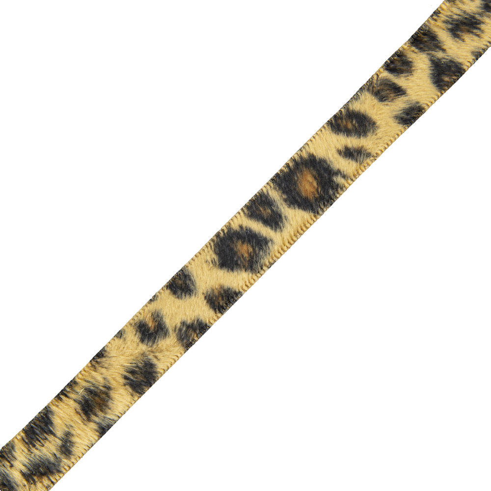 Леопардовая лента представляет собой узкую полоску бархатной ткани по продольным краям закрепленной тонкой кромкой. С внутренней стороны плотная ткань, а лицевая сторона покрыта ворсом.