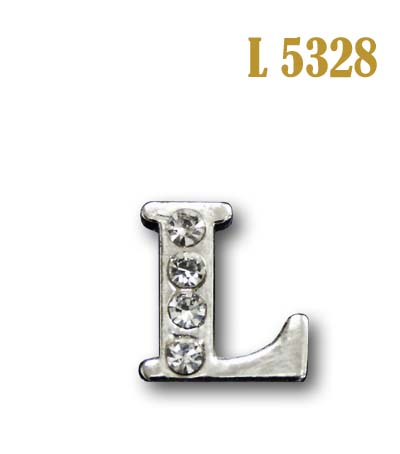 Буква - L, выпуклая со стразами, литая металлическая, со сквозной прорезью по всей ширине для вдевания ленты, шнура и т.п.